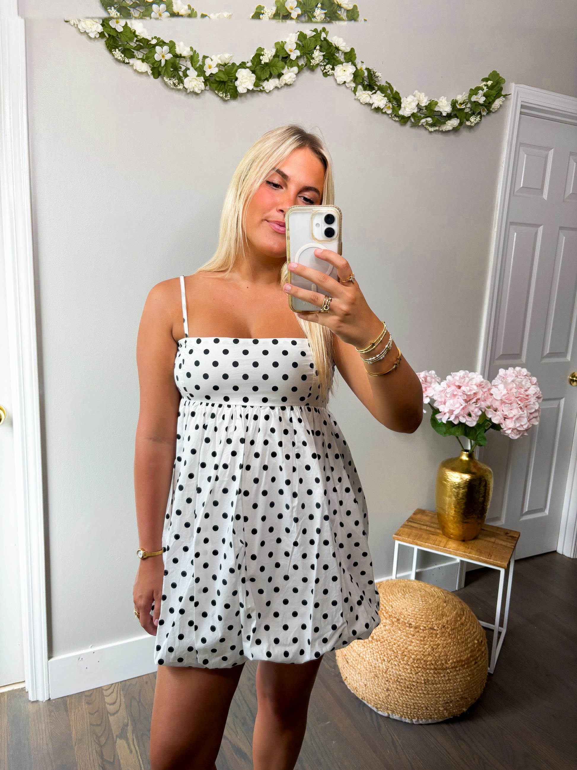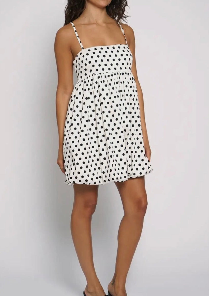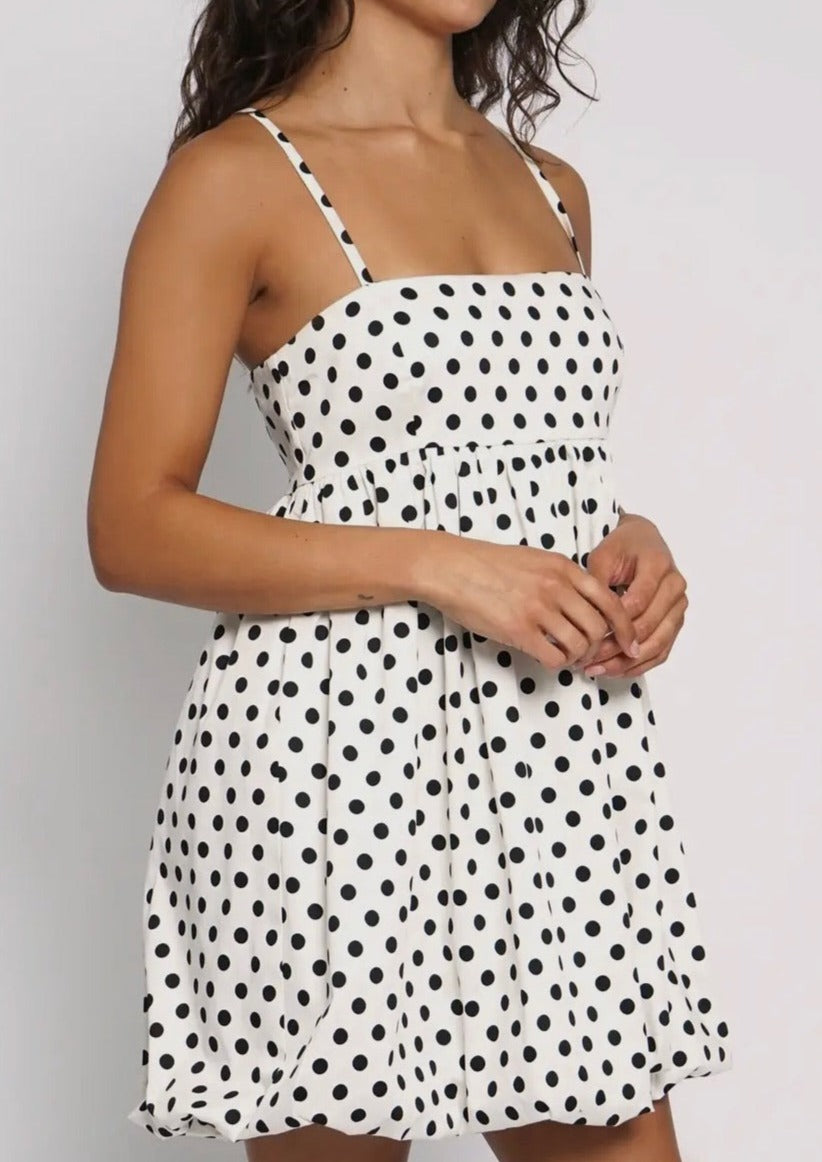 Polka dot bubble mini dress.
