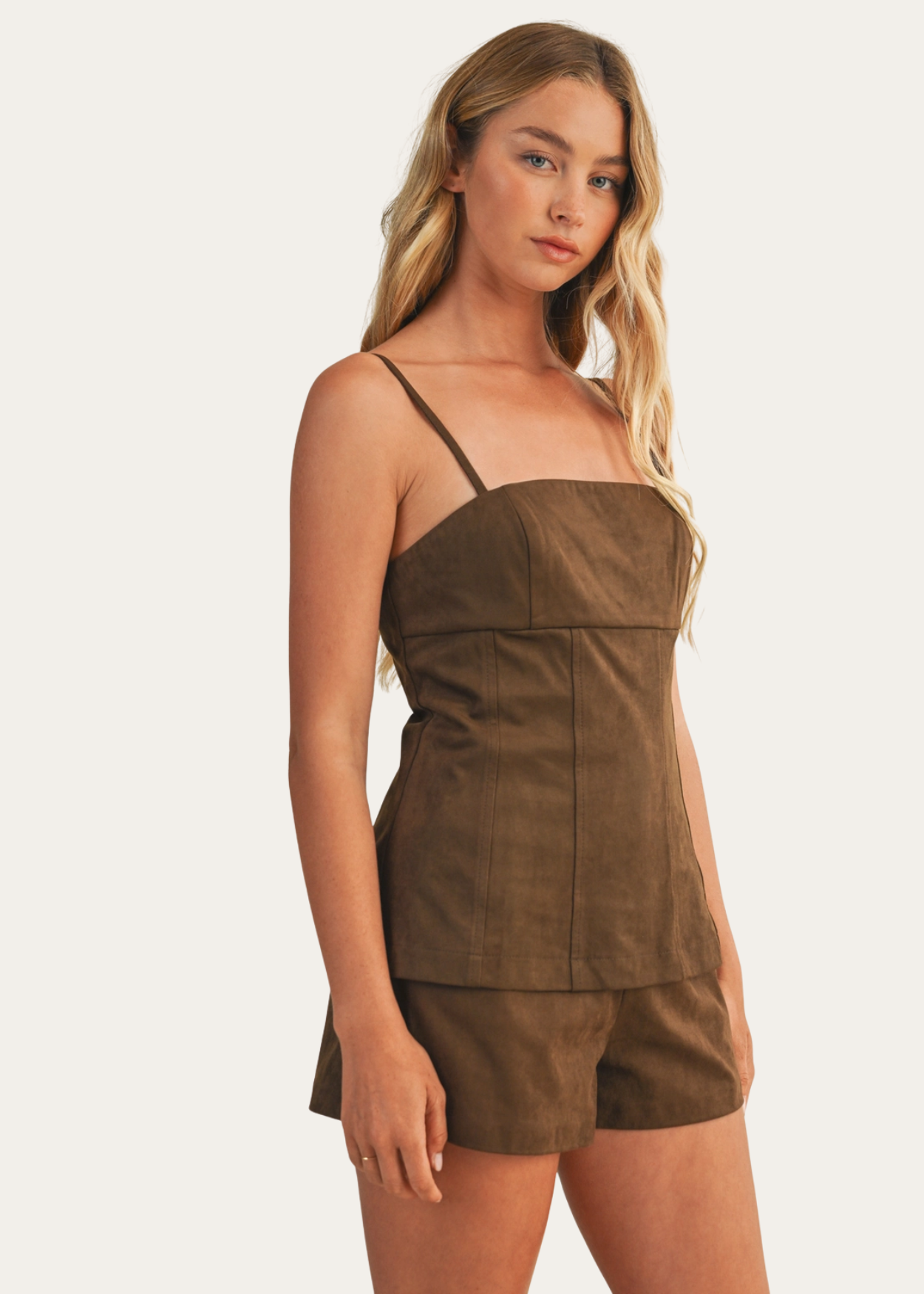 Faux suede straight neck cami top.