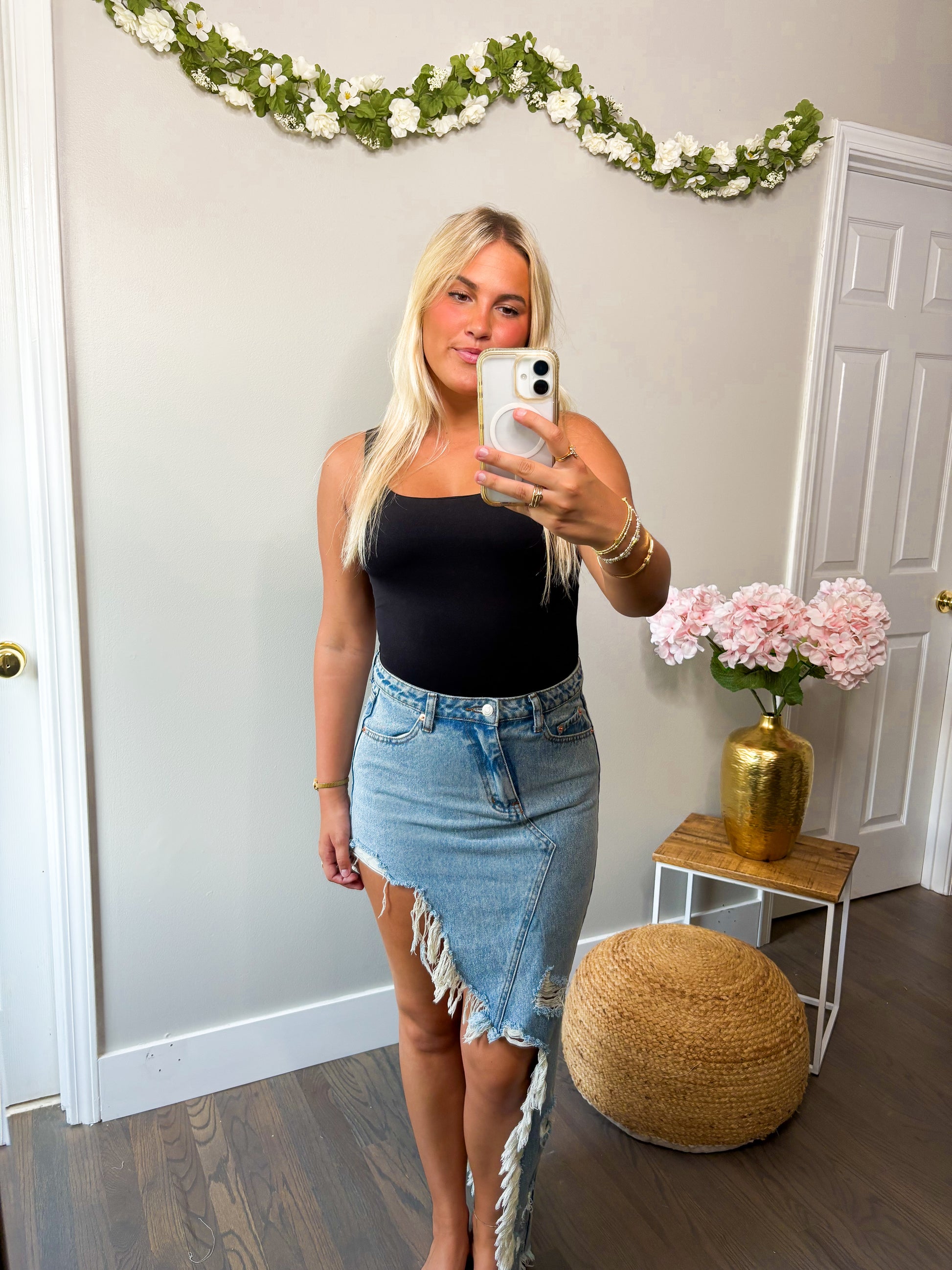 Distressed maxi skirt.